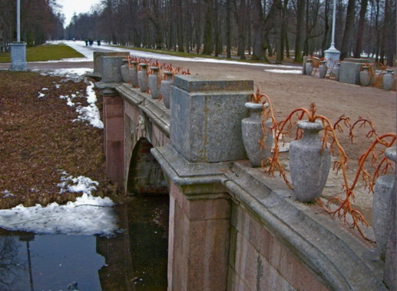 Большой Китайский мост в Санкт-Петербурге размещен неподалеку от Китайского театра, напротив центральных ворот парадного двора Екатерининского дворца в Александровском парке – одном из пяти парков города Пушкина.